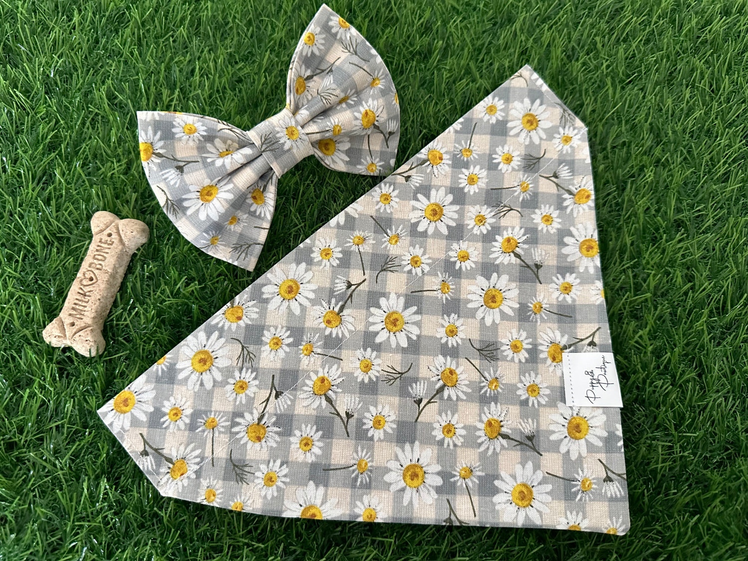 Gray & Daisies Dog Bandana