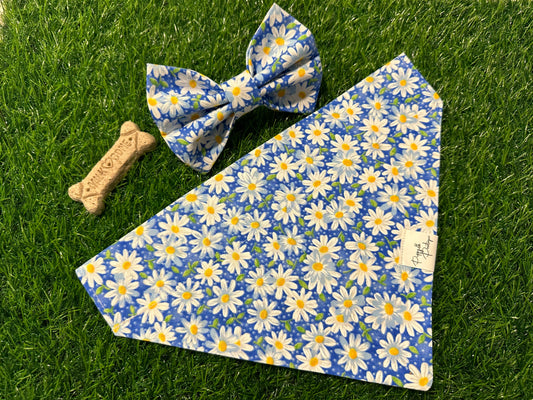 Daisies On Blue Dog Bandana